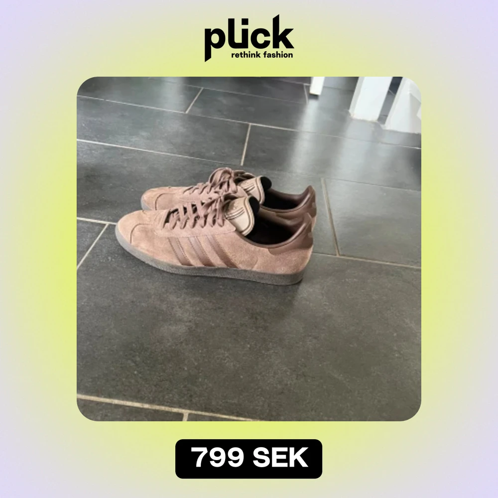 Bruna adidas gazelle Använda endast någon enstaka gång och är i helt nyskick. Storlek 45 men är något mindre i passformen och passar även en 44