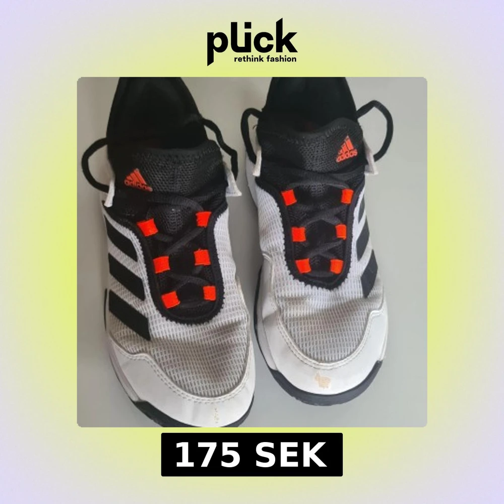 Snygga fotbollsskor från Adidas i svart och vitt med klassiska tre ränder på sidan. Skorna har orange detaljer vid snörningen och är tillverkade i syntetmaterial med mesh för bra andningsförmåga. Perfekta för dig som vill sticka ut på planen.