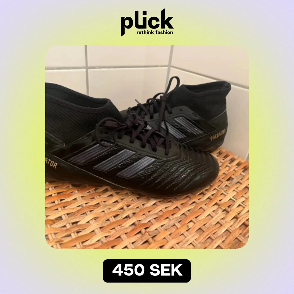 Säljer mina adidas predator black i riktigt bra skick, har inte används mycket. Storlek: 44