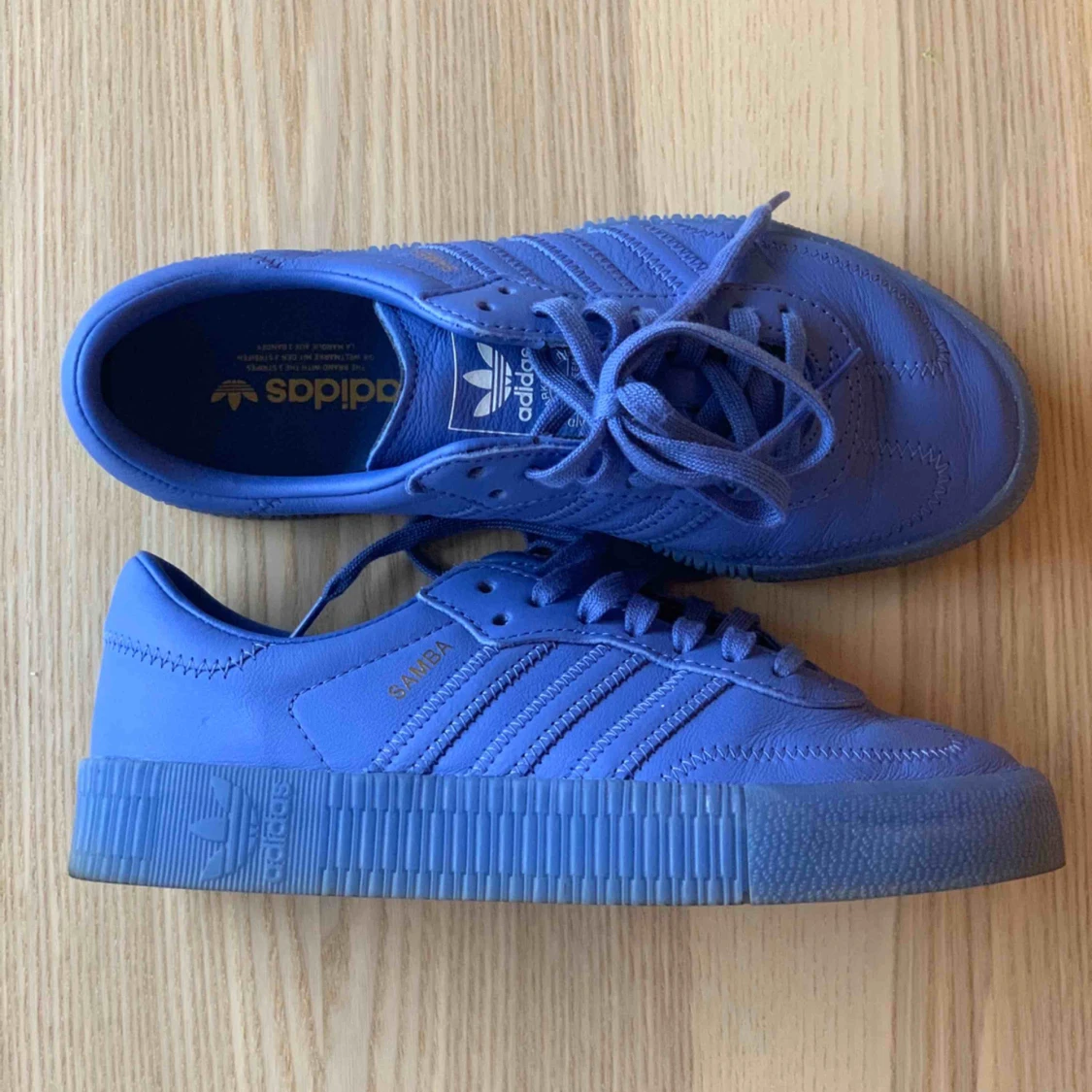 Knappt använda adidas sneakers i en superfin blå/lila färg. Klassisk modell med en färg som sticker ut. Väldigt sköna också!