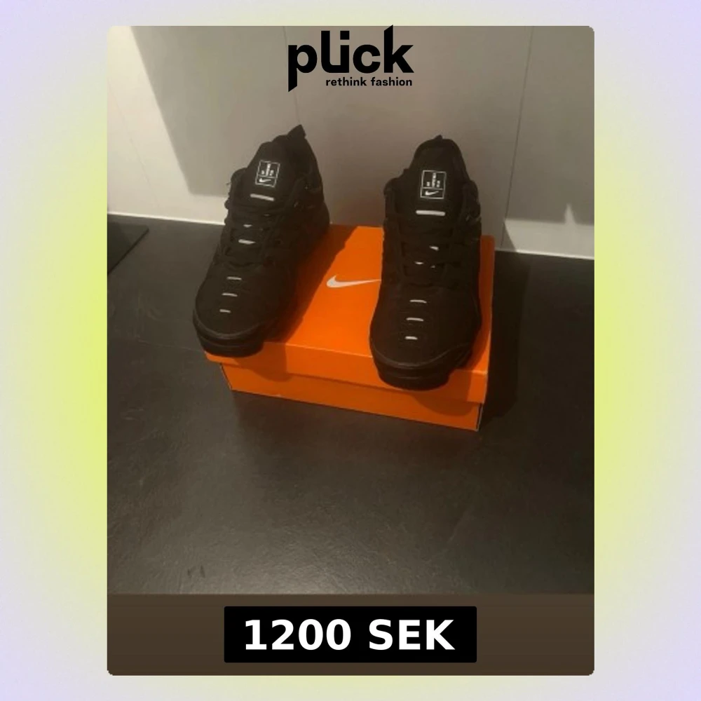 Nikes Air Vapormax Plus sneakers i helsvart. Skorna är väldigt stiliga och passar med allt. Kom gärna med prisförslag. Dom är använda ett par gånger