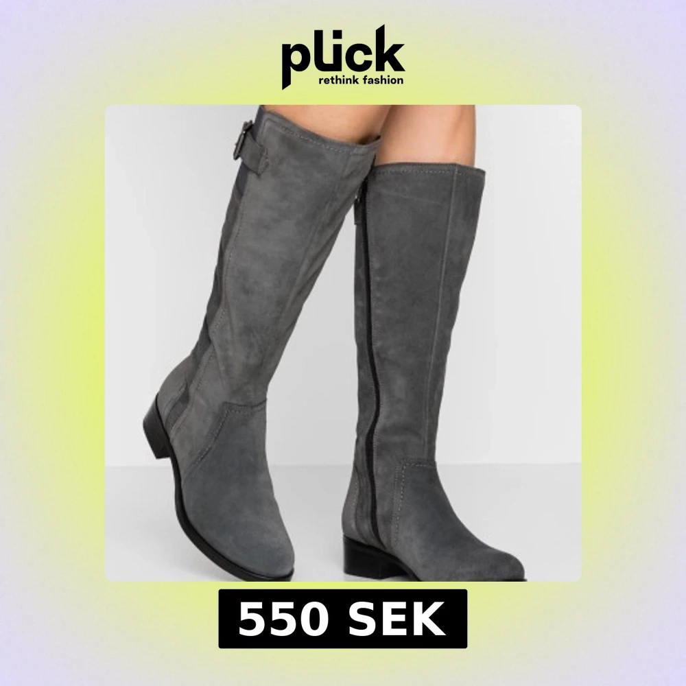 Snygga knähöga stövlar i grå mocka från Anna Field. De har en låg klack, rund tå och dragkedja på insidan för enkel påtagning. Dekorativt spänne upptill och stilrena sömmar ger en clean look. Perfekta för höst och vinter.