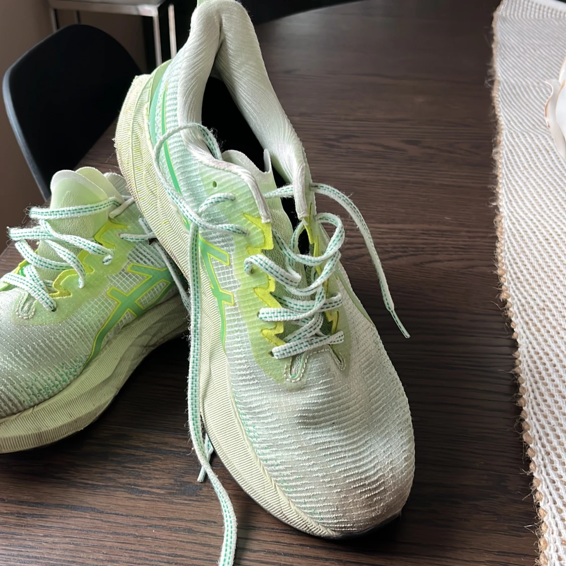 Säljer ett par mintgröna Asics löparskor med gula och gröna detaljer. Kommer såklart tvätta de, små repor men i bra skick