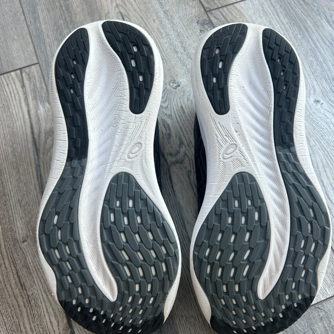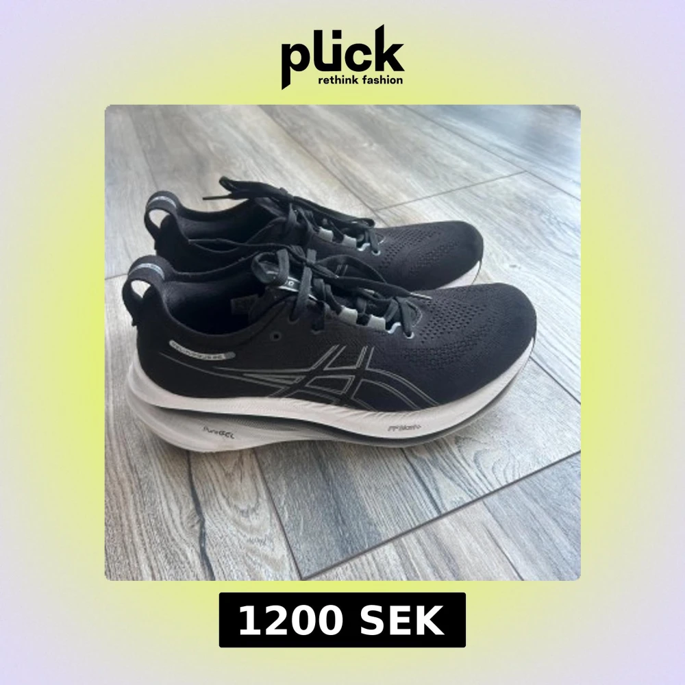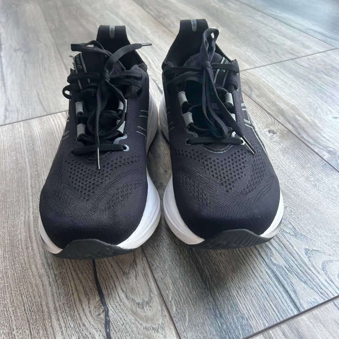 Svarta Asics Nimbus 26. Använda en löparrunda 2,5km, rena och är i nyskick. Köpta 27/feb 2025 kvitto finns. Billigare vid snabb affär.