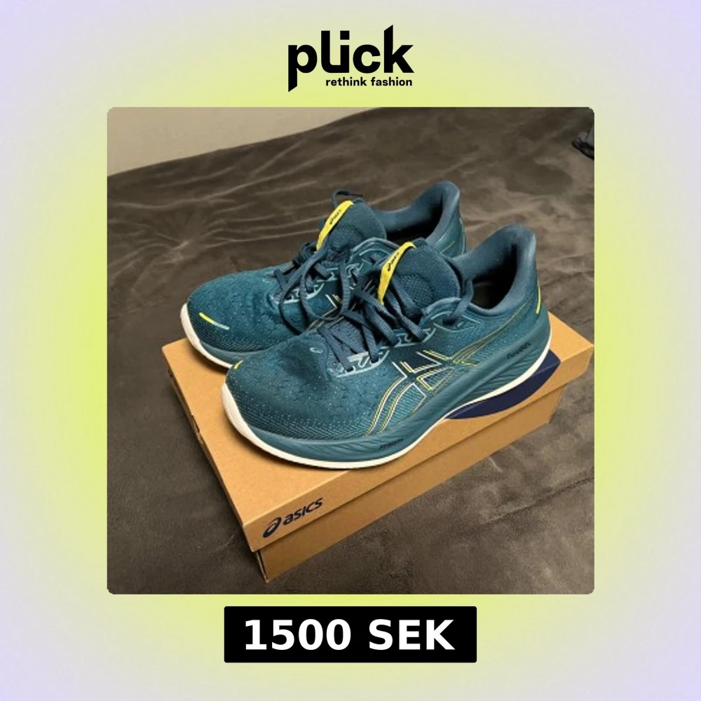 Säljer ett par blå Asics Gel-Cumulus 26 löparskor i nästintill nyskick. Storlek: 43,5. De är endast använda tre gånger och säljs eftersom jag upptäckt att de är för stora för mig. Nypris: 1700kr.