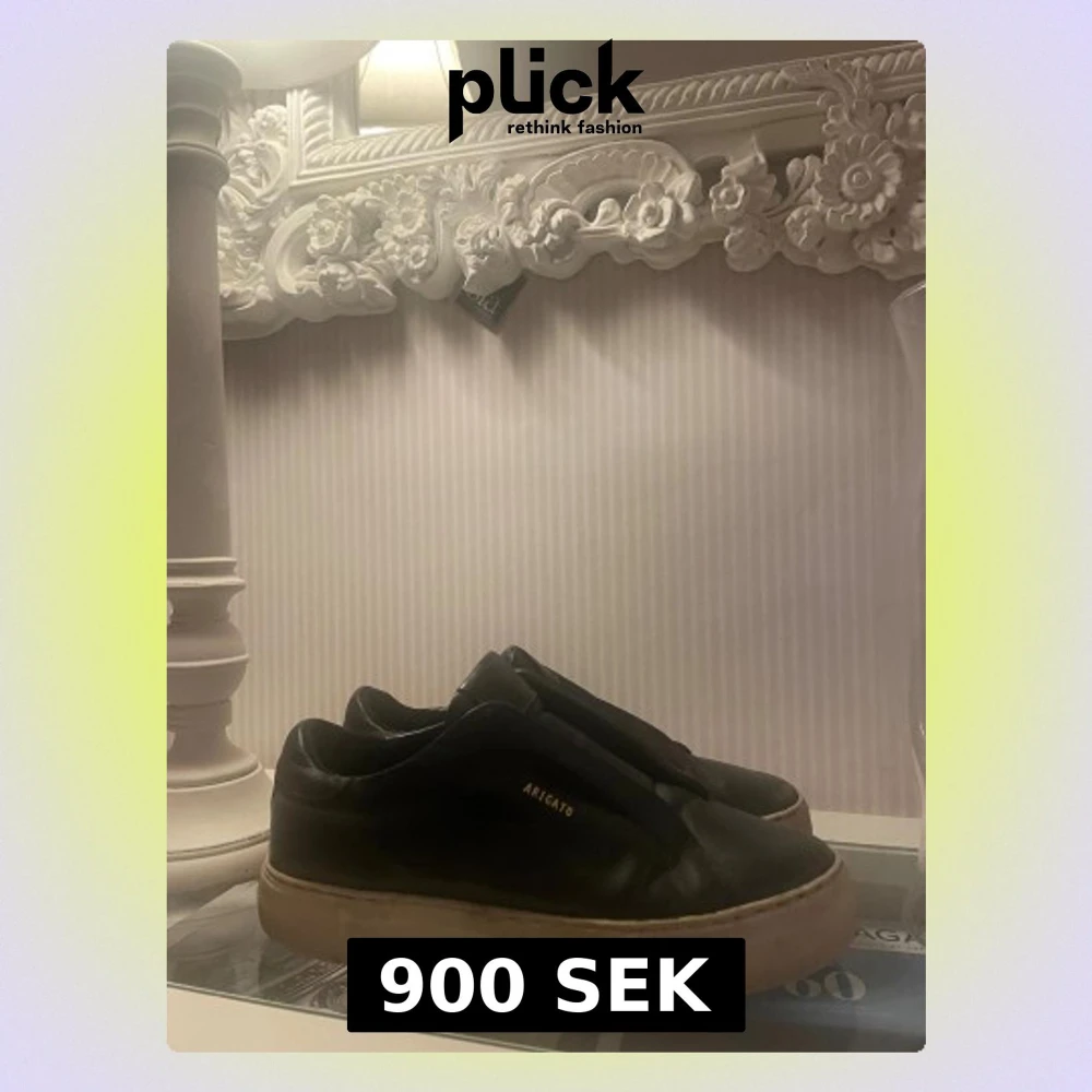 Svarta sneakers från Axel Arigato med stilren design och guldfärgad logga på sidan. Skorna har en vit platt sula och är tillverkade i skinn. Rund tå och elastisk panel istället för klassisk snörning ger en clean look.