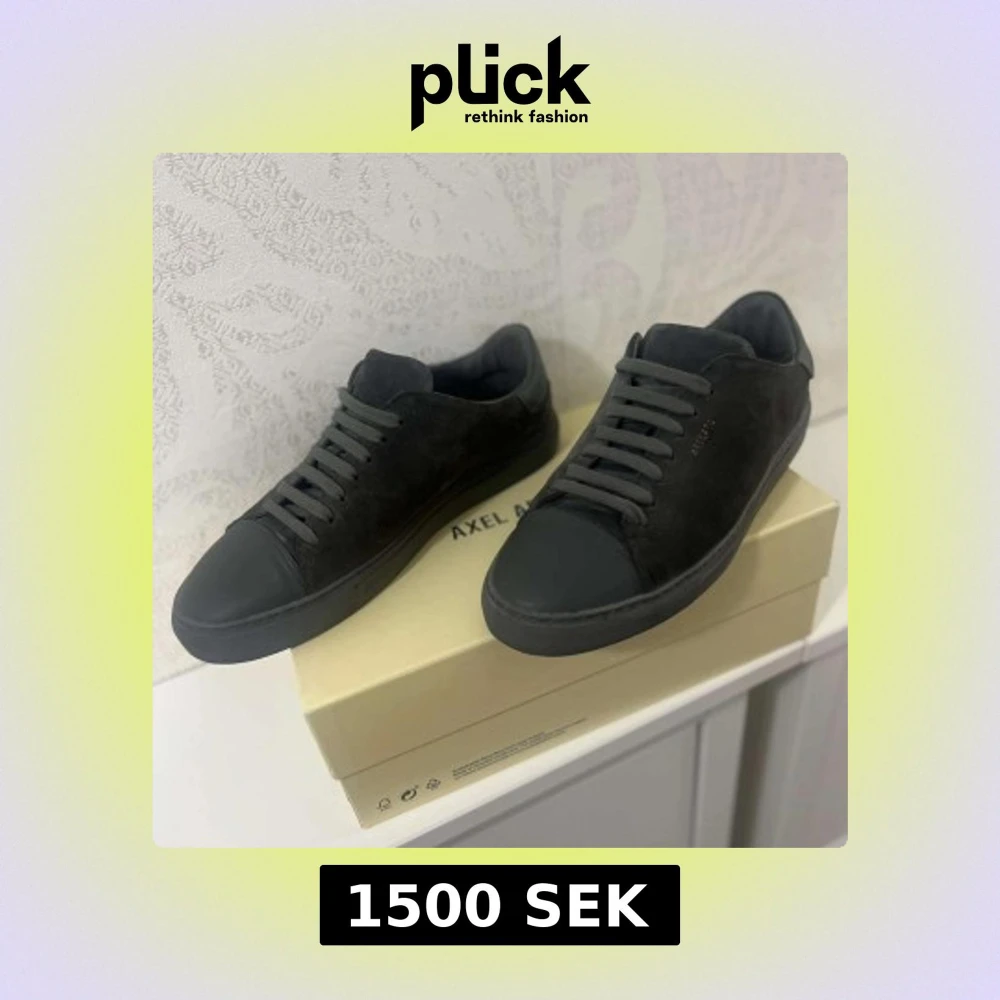 Stilrena svarta sneakers från Axel Arigato i mocka med matchande svarta snören och tåparti i skinn. Diskret logga i guld på sidan. Klassisk låg modell med rund tå och platt sula, perfekt för en clean och modern look. Säljer de åt min bror, han har använt de få talgånger och är i ett fint skick🤩 ny pris 2800kr