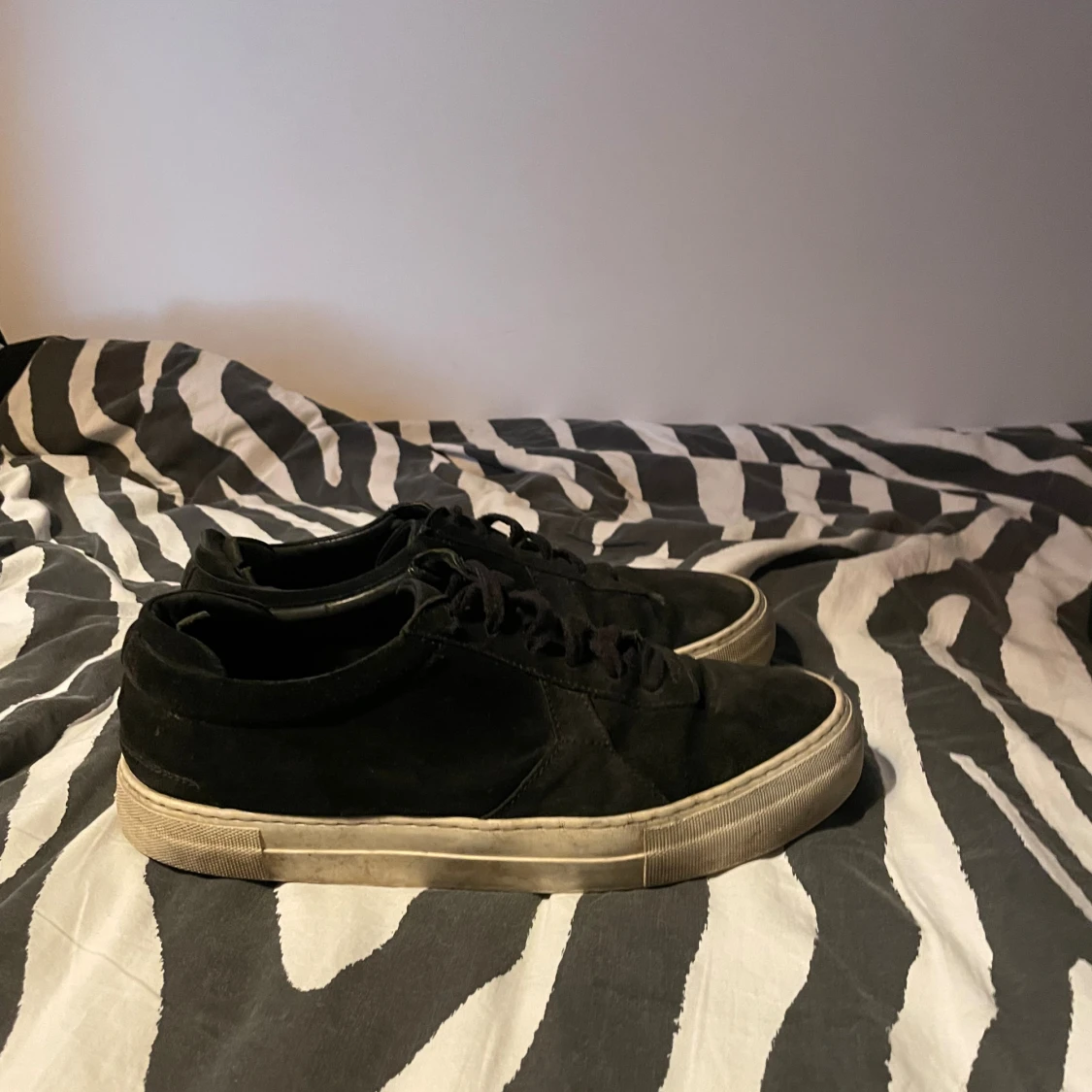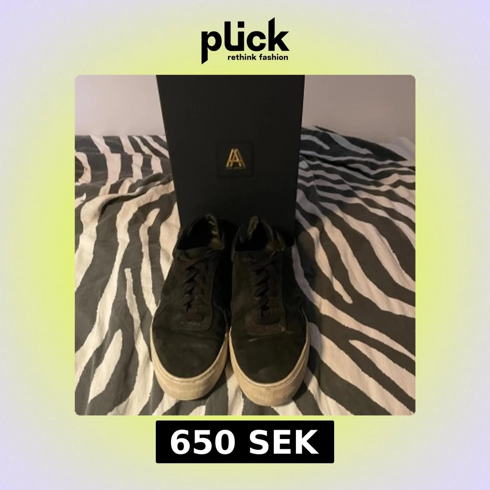 Stilrena svarta sneakers från Axel Arigato i mocka med klassisk låg profil och vit platt sula. Skorna har snörning och diskret logga på sidan. Perfekta för dig som gillar minimalistisk och clean stil. Levereras med originalkartong och dustbag. Kommer tvättas innan säljning och priset är ej hugget i sten