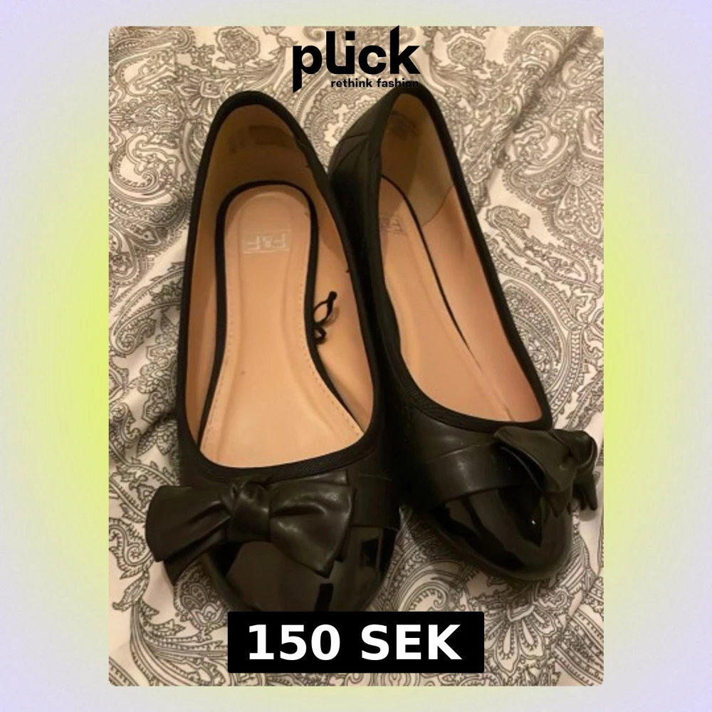 Snygga svarta ballerinaskor från F&F med glansig finish framtill och dekorativ rosett på tån. Skorna har rund tå och quiltade detaljer på sidorna. Perfekta för dig som gillar stilrena och feminina skor med lite extra detalj.