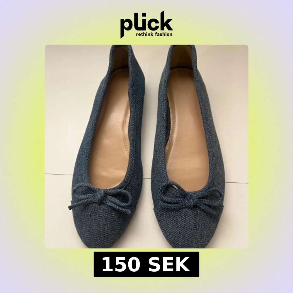 Snygga ballerina från H&M i blå denim-look med rund tå och söt rosett framtill. Skorna har platt sula och är perfekta för dig som gillar en enkel men trendig stil. Materialet är syntet med denimstruktur och insidan är ljusbeige. Jag har bara använt som fåtal gånger