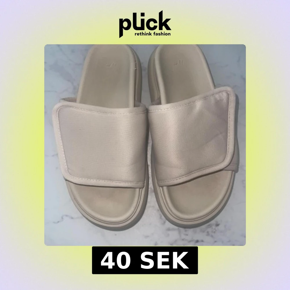 Chunky beiga slides från H&M med bred rem över foten och öppen tå. Snygg minimalistisk look med platt sula och mjukt syntetmaterial. Perfekta för sommardagar eller chill hemma. Enkel och clean design som passar till allt. MYCKET BEKVÄMA