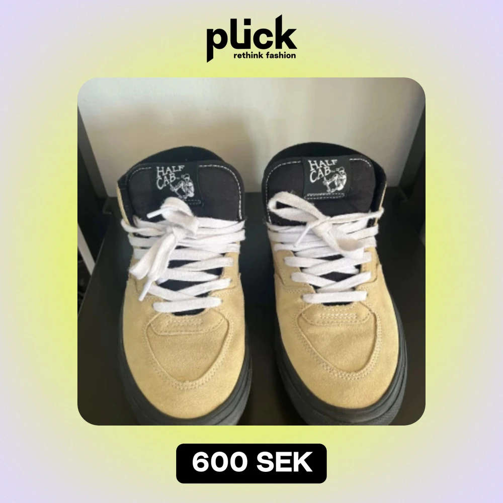 Vans Half Cab sneakers i beige mocka med svart sula. Skorna är knappt använda. Perfekta för skateboarding eller vardagsbruk!