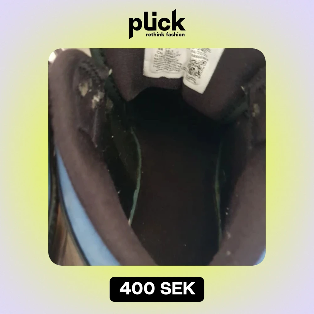 Nike Air Jordans i svart, blå och vit - Snygga Nike Air Jordans i en klassisk färgkombination av svart, blå och vit. Skorna har en ikonisk design med snörning och en bekväm passform. Perfekta för dig som vill ha en stilren look. Det har en liten difekt som du ser på bild 4. Pris kan diskuteras vid snabb affär!