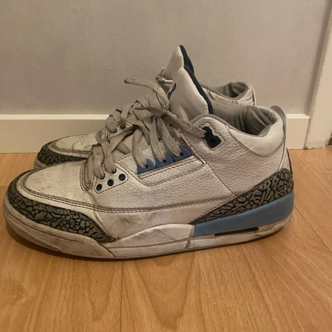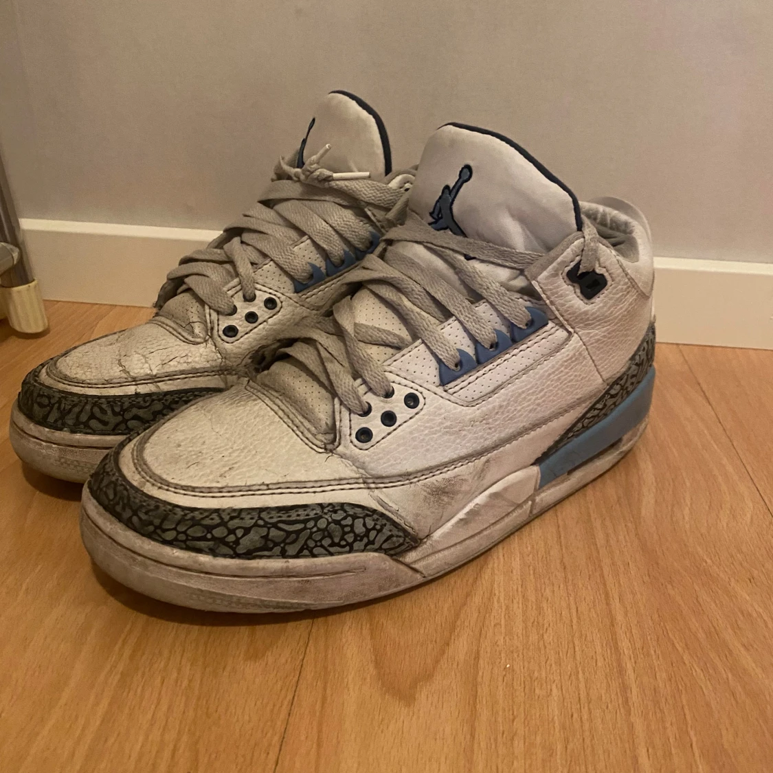 Säljer ett par Jordan 3 unc blue i helt ok skick tvättas in dom fraktas storlek 42 skriv om ni har funderingar pris kan diskuteras , dom är lite större i storleken, så passar typ 42-43