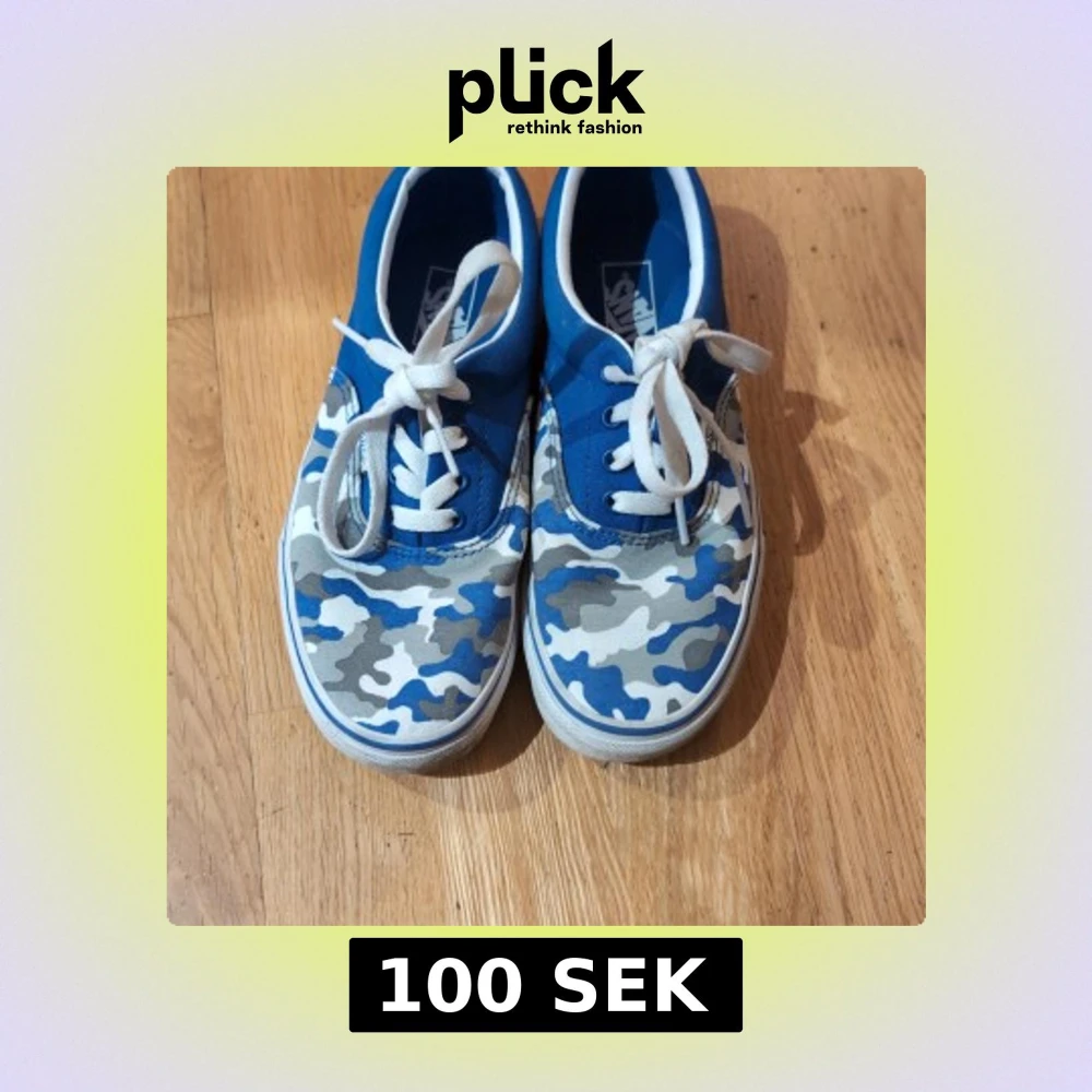 Snygga Vans sneakers i blått och kamouflagemönster. Skorna har klassisk snörning och en vit sula. Perfekta för en skater stil och storlek jr 35.