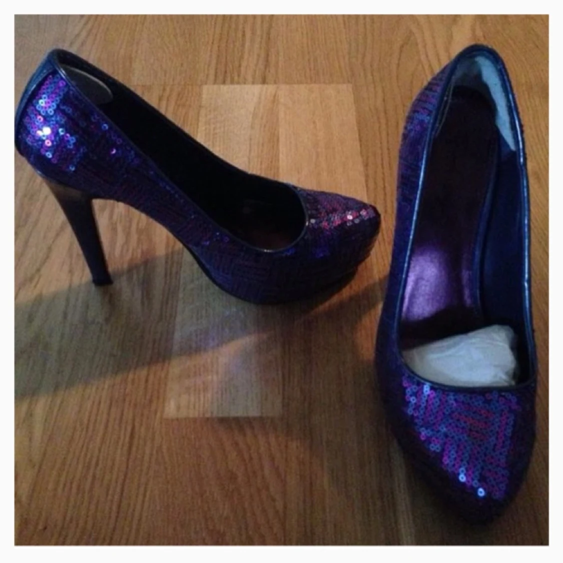Lila/blå Paljettskor helt nya. Oanvända!! Köpta i England! Extra pris just nu 500kr först till kvarn. Perfekta för nyår!! Storlek 36 men passar nog en liten 37 också! Portot betalar du