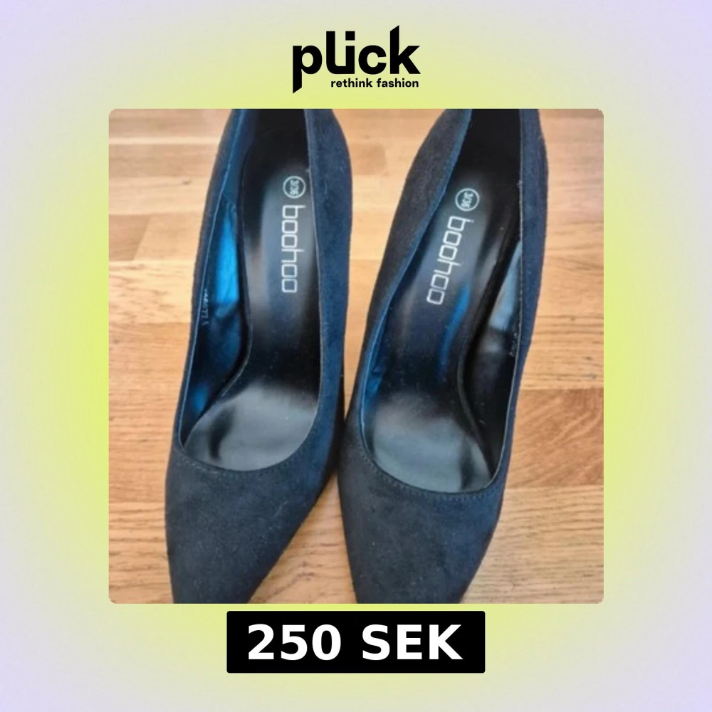 Snygga svarta pumps från Boohoo med spetsig tå och hög klack. Skorna är i mockaimitation och har en klassisk, elegant form som passar till många olika outfits. Perfekta för dig som gillar stilrena och trendiga skor.