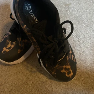 Svarta skor med leopard mönster. Aldrig använda. I storlek 38/5 och kommer från Boohoo pris: 70kr