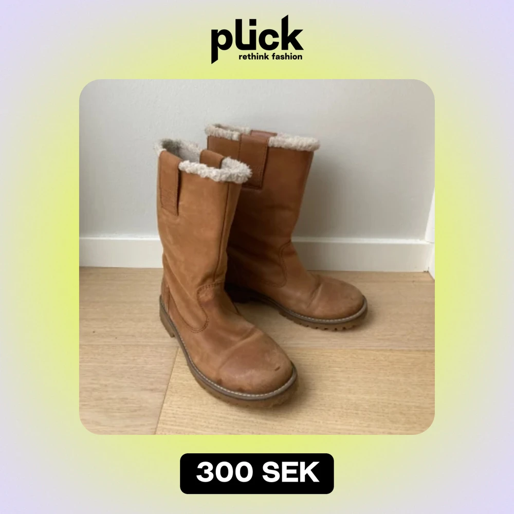 Bruna boots i läder, fodrade. Snygga och sköna. Lite slitna därför det är billigare pris.