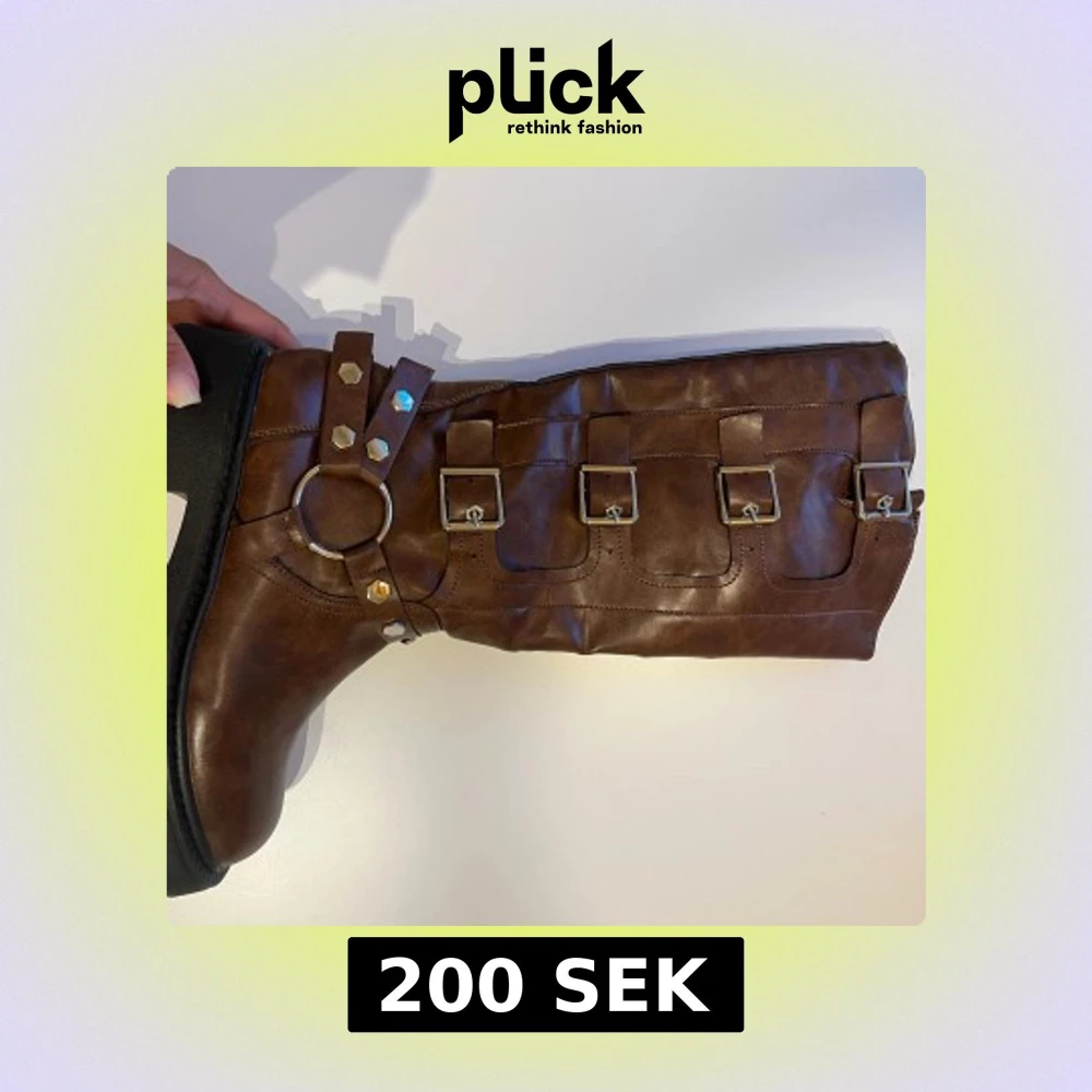 Bruna boots med spännen och nitar