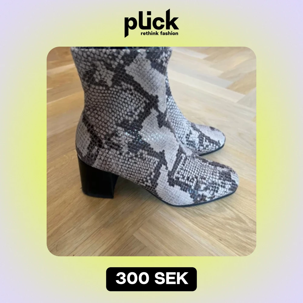 Stövletter i ormskinnsmönster som inte får plats i resväskan, så vill ge dem chansen att få flytta in i en annan garderob💫