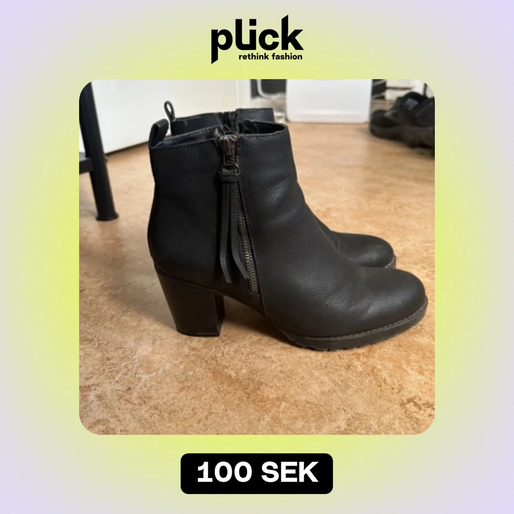 Svarta boots med liten klack. Använda några tillfälle, finns slitage Se bilderna