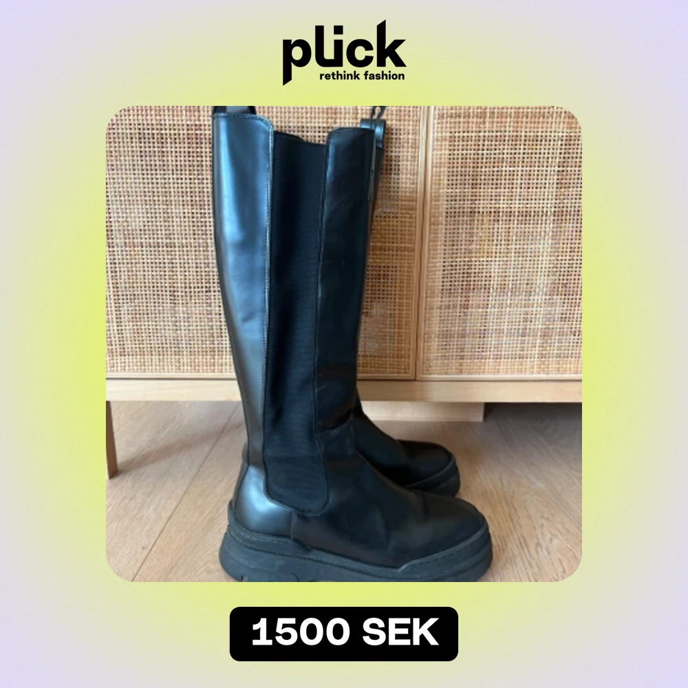 Chelseaboots i läder med resårpannå i sidorna och chunky sula i gummi. Komposition Yttersula: Termoplastiskt Gummi 100 % Överdel: Läder 100 % Nypris 2250 kr Säljes för 1500kr Kan mötes upp vid Östermalm/karlavägen Eller hämtas vid Gärdet
