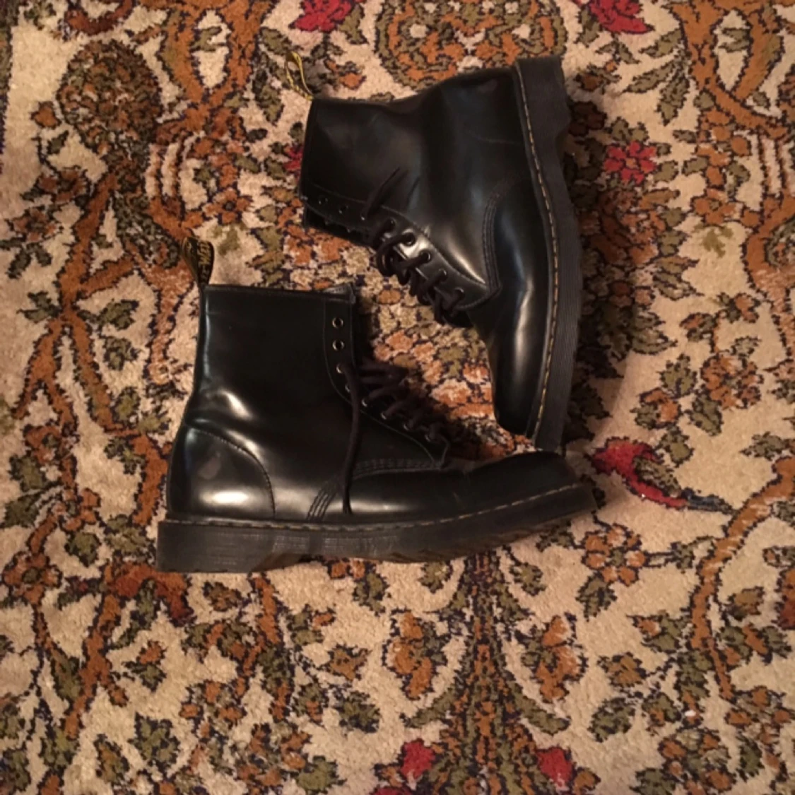 Dr Martens-kängor. Mycket gott skick, lite skavda på vissa ställen - men knappt använda pga fel storlek. Innersulan saknas! OBS! Köparen står för ev frakt.