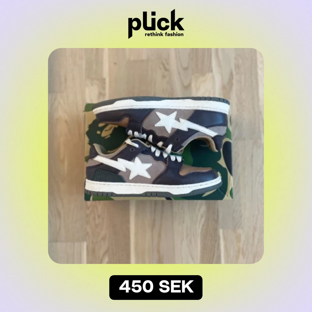 Bape sta brownivory Riktigt bra skick använda runt 2 gånger Kartongen också bra skick och extra sulor med följer