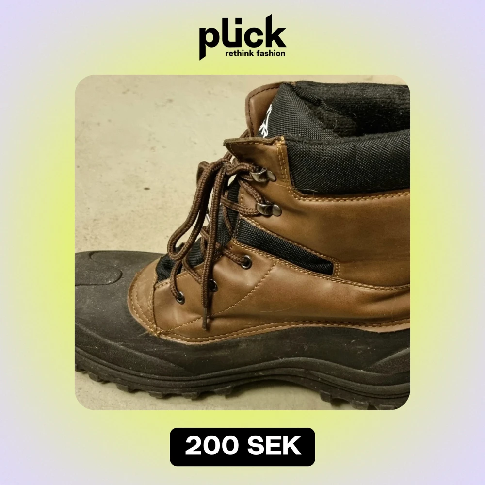 Bruna, inte helt nya. Dessutom städade på bilderna. Rejäl sko som tar sig igenom det mesta!