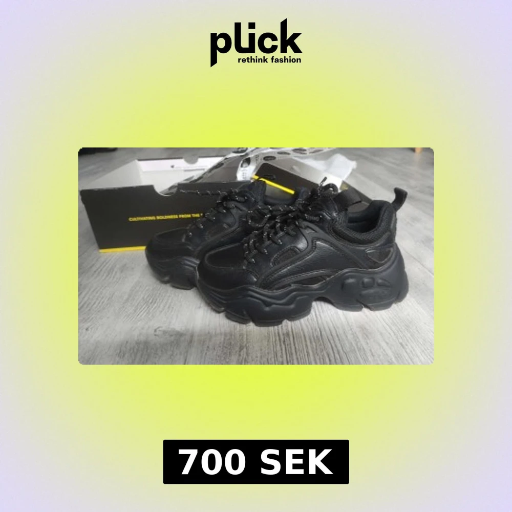 Buffalo sneakers i helsvart med chunky plattformssula i deras modell Binary. Endast använda 3 gånger och säljes med låda och dustbags.