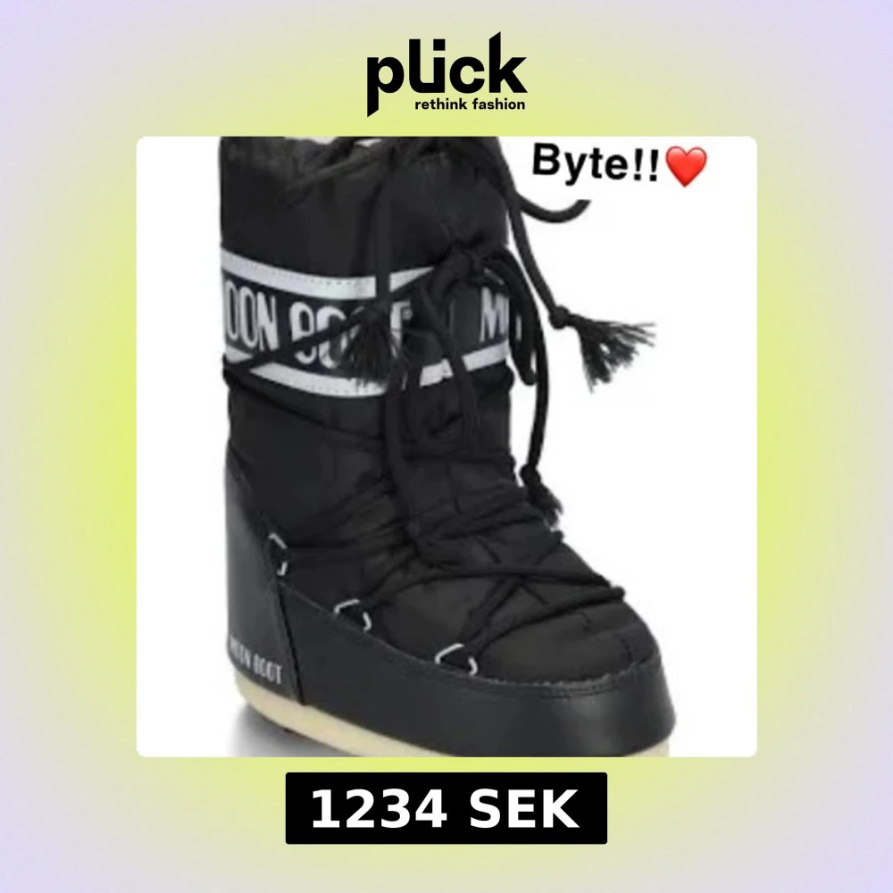 Hej! Skulle nån vilja byta sina låga moonboots i svart, till ett par höga i svart skriv! Jag vill ha i storlek 36/38 och de är även de jag vill byta mot. Vill byta då jag vill ha låga istället. De är endast använda i max tre månader! Och är sparsamt använda. Kan inte se några defekter.☺️❤️