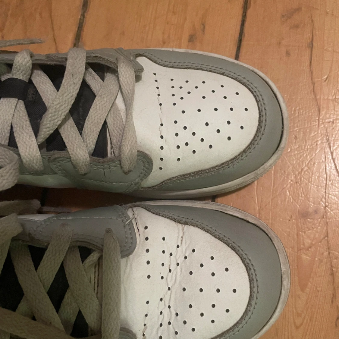 Säljer ett par jättesnygga Jordans då dom inte kommer till användning 💞 Ena skon är lite mer sliten fram då den andra haft ett crease-skydd. Fler bilder finns såklart och är öppen för alla frågor. Priset är inte hugget i sten ❣️ Köpta för 2999kr!
