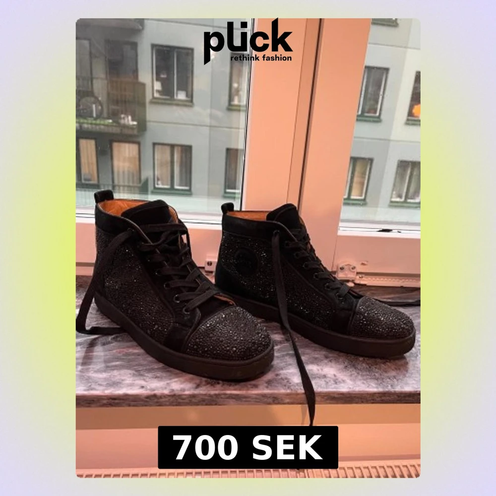 Säljer ett par Louboutin av modellen Louis Strass. Skorna är av Mocka och glittrig strass som glittrar i ljus och mörker. Skorna är i storlek 42 men passar även 43. De köptes in från Vestiaire collective för ca 2 år sen för 8000kr. Skorna är fortfarande i mycket bra skick och jag har endast använt dom vid finare tillställningar. Jag säljer dem för att jag har växt ifrån märkeskläder och dyra produkter.