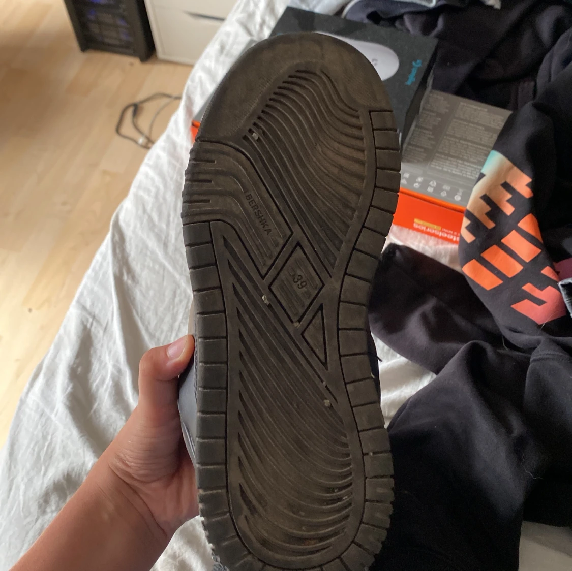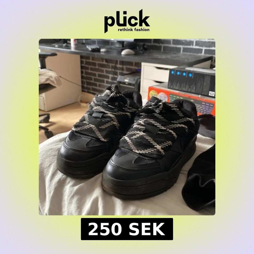 Chunky svarta sneakers från Bershka med bred, kraftig sula och svart-vita mönstrade snören. Ovandelen är i syntetmaterial med mesh-detaljer för extra andningsförmåga. Snygg streetstil som passar perfekt till jeans eller cargo.