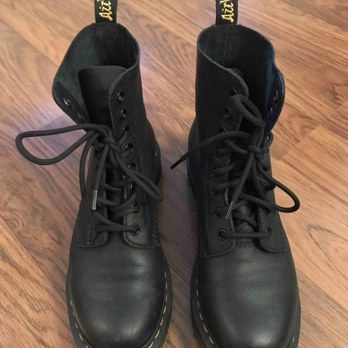 Dr Martens Pascal 1460 svarta i skinn. Väldigt sparsamt använda kängor i mjukt skinn med snörning, storlek 39. I superfint skick! Ordinarie pris 1700kr. Skickas med postnord.