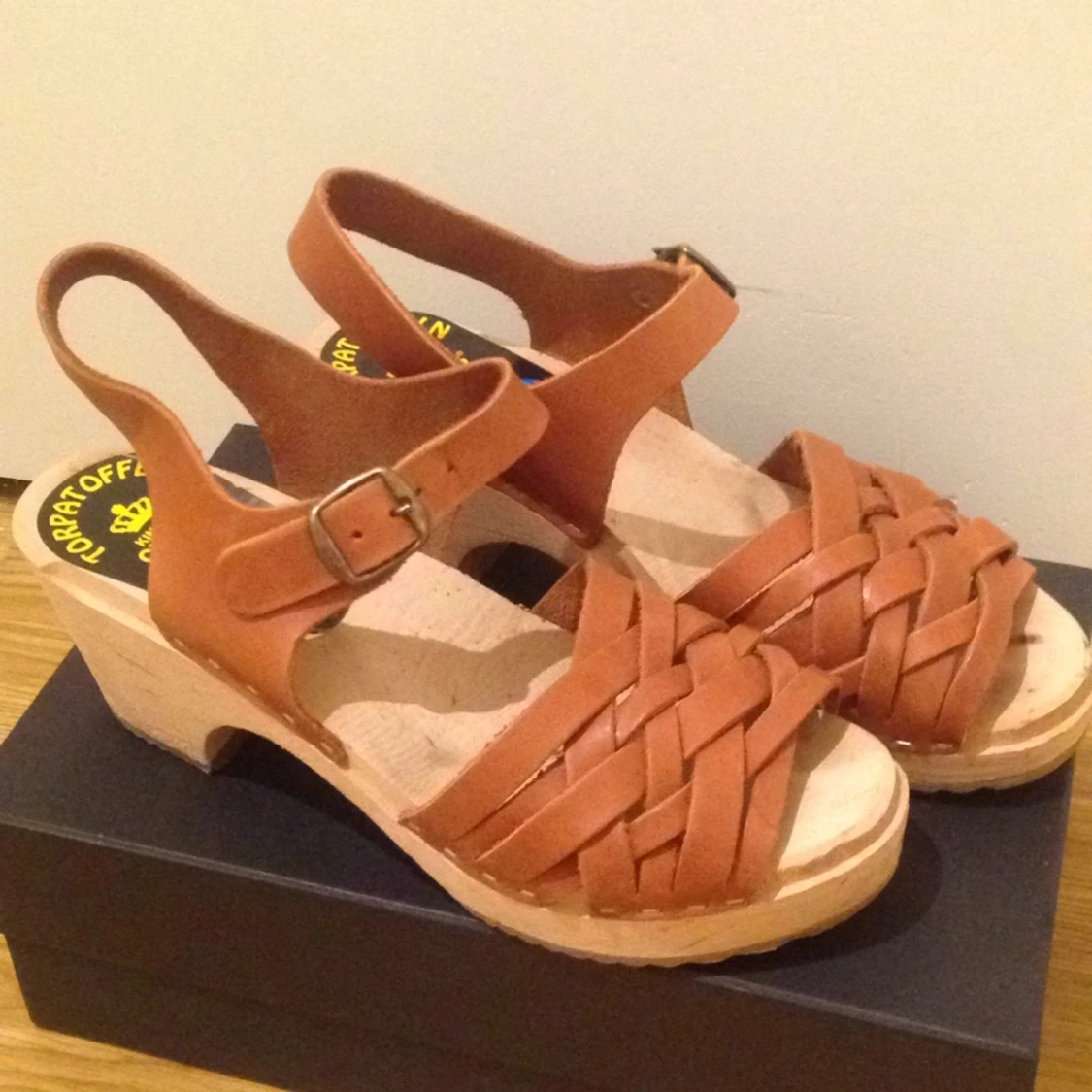 Urfina clogs med ljusbruna läderremmar. Har tyvärr inte blivit använda som de förtjänar att bli och jag säljer dem därav. Ordpris: 600 kr. Mycket gott skick!