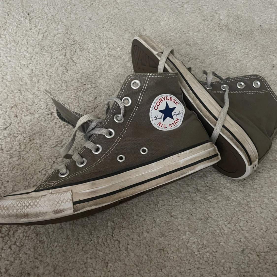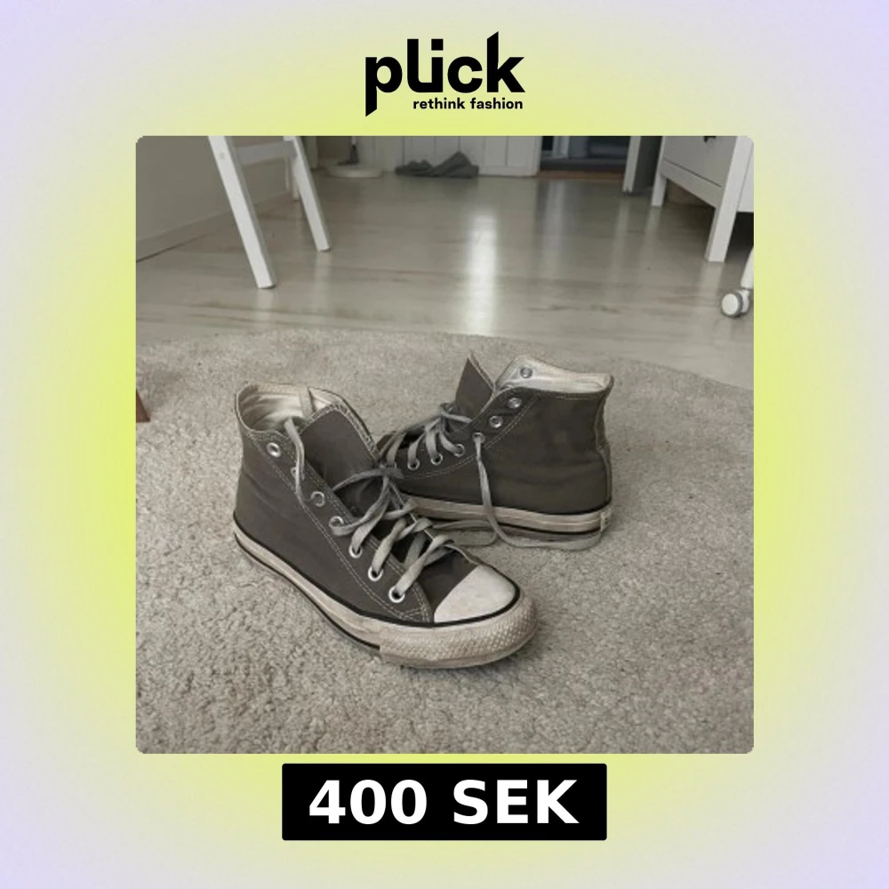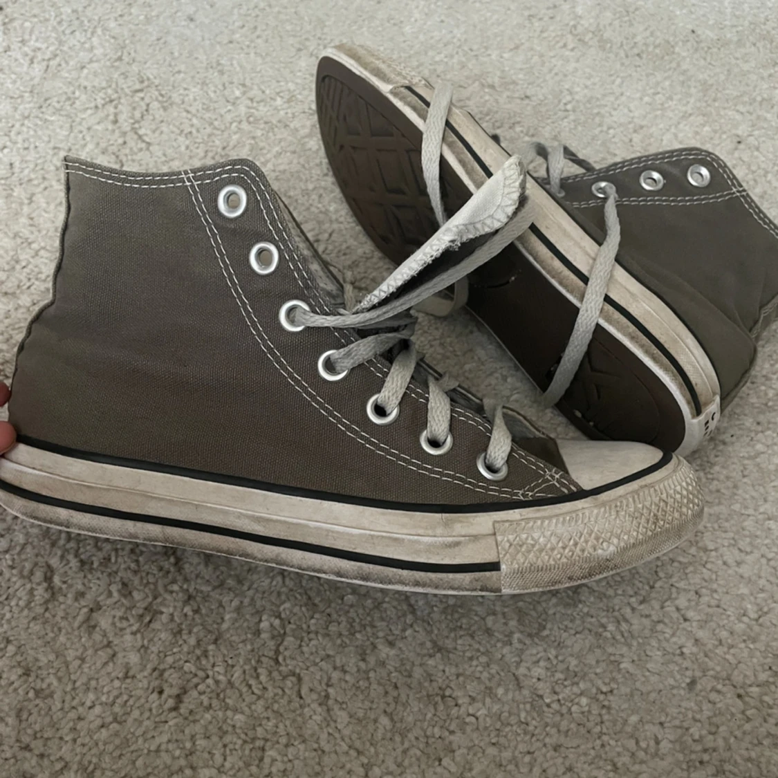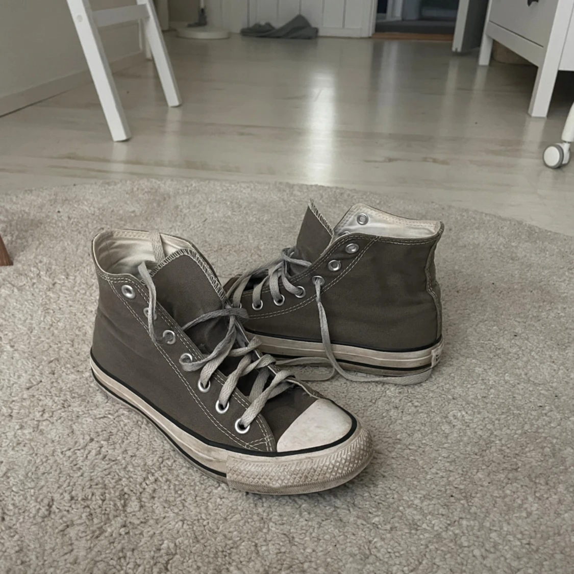 Klassiska Converse Chuck Taylor All Star i grått canvasmaterial med vita och svarta detaljer. Högt skaft, rund tå och snörning framtill. Ikonisk logga på sidan och vit sula med svart rand. Perfekta sneakers för en avslappnad och cool stil.