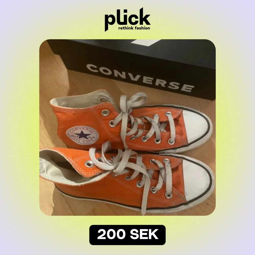 Använda Oranga Converse allstar. De är i bra skick men är givetvis synligt använda. Inga stora skador förutom helt vanligt slitage.