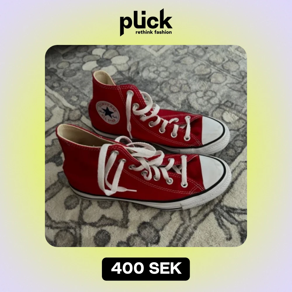 Röda Converse i väldigt bra skick! Använda väldigt få gånger. I storlek 39