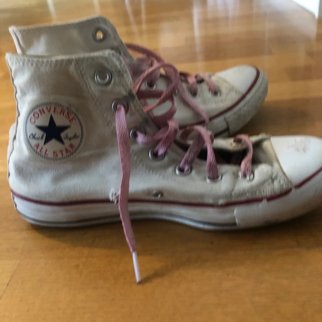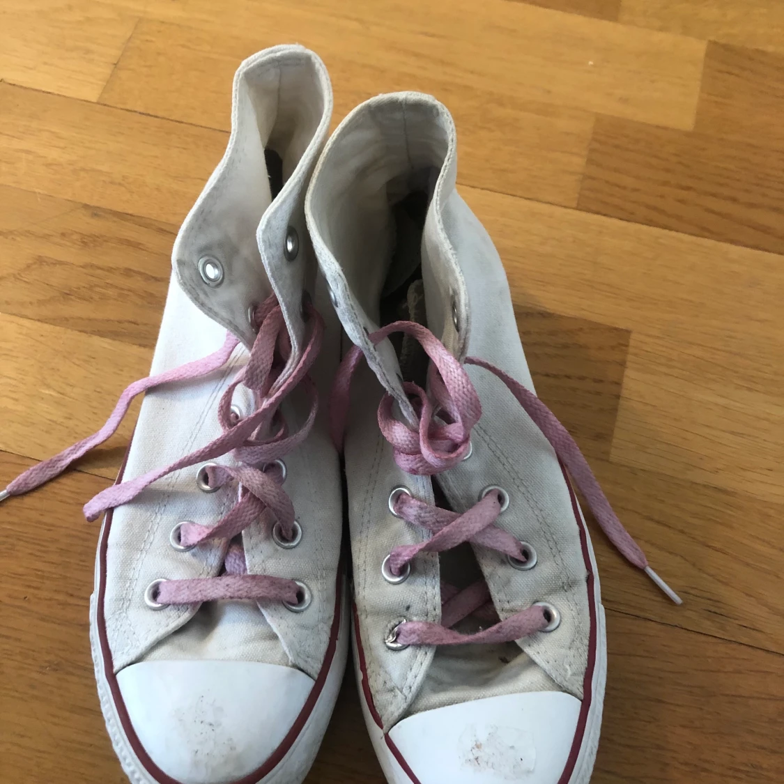 Säljer min convers då jag inte använder dom längre ⚡️ Dom är i storlek 39 och har rosa skosnören som jag skaffat själv 😃 På bilden är de smutsig och om som säljs ska jag sorklart tvätta dom 🥰