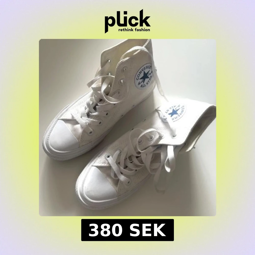 Clean Klassiska vita Converse All Star high top sneakers. Storlek:37