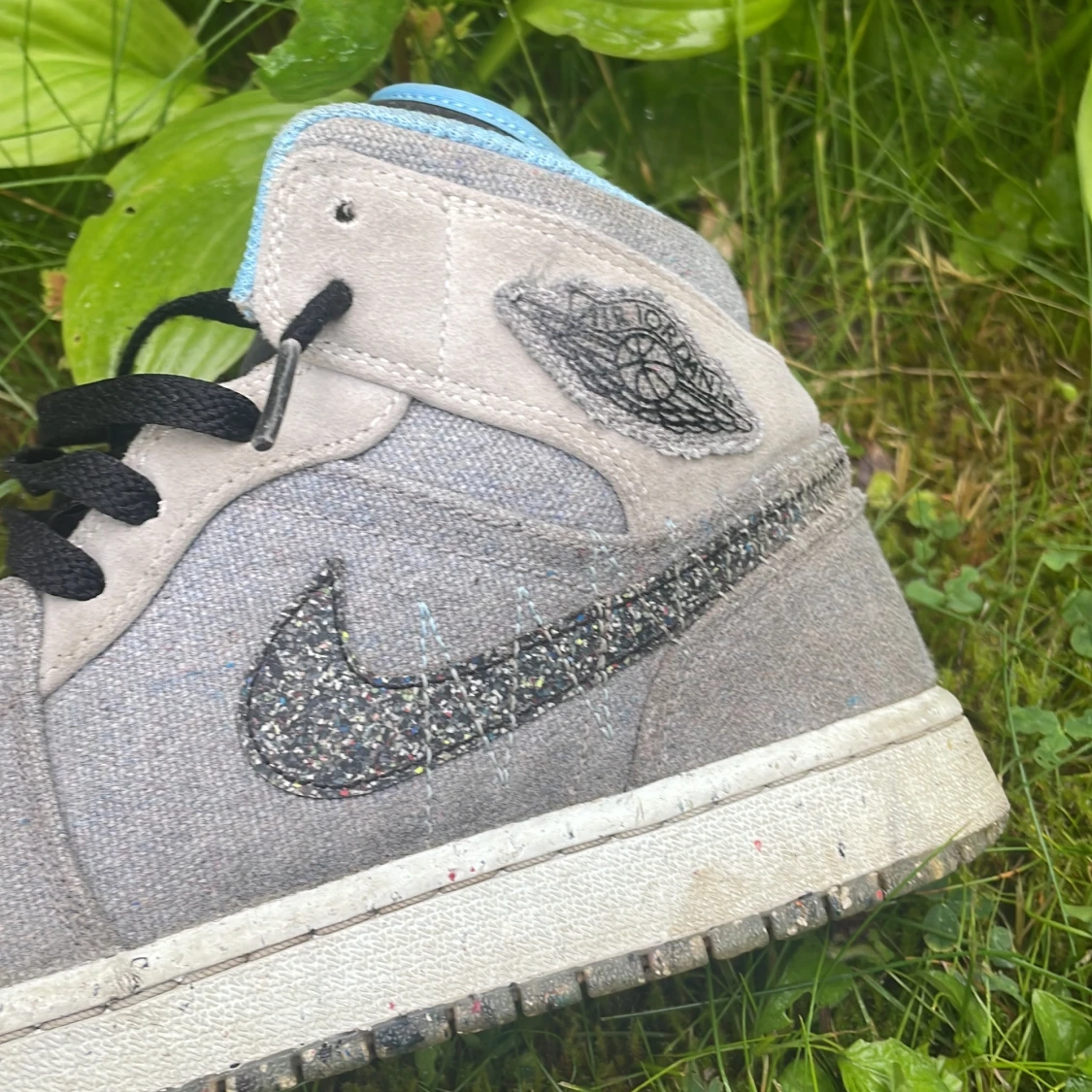 Nike air jordans 1 mid crator grey universitet blue i storlek 41. Bra skick använd med varsamhet. En unik sko med universitet blue detaljer perfekt till sommaren!
