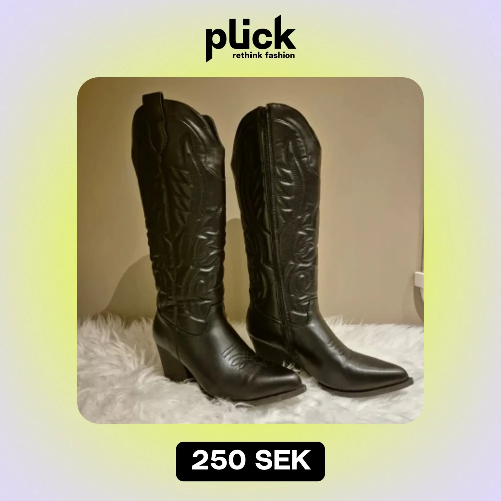 Cowboyboots  - Säljer mina svarta höga stövlar som är såå fina att ha till klänning och kjol!!❤️