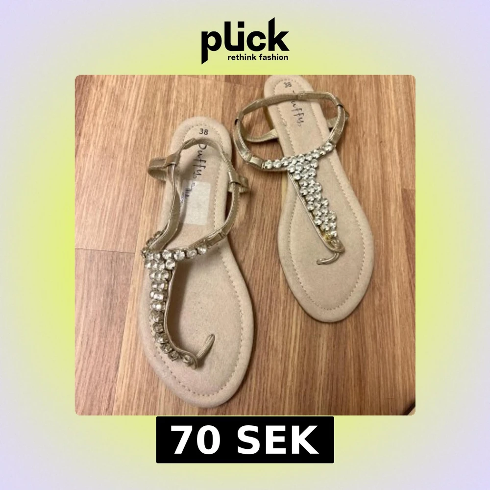 Snygga guldiga sandaler från Blowfish med glittrande strassdetaljer på remmarna. Perfekta för sommarens alla tillfällen. Sandalerna har en bekväm passform och en stilren design.
