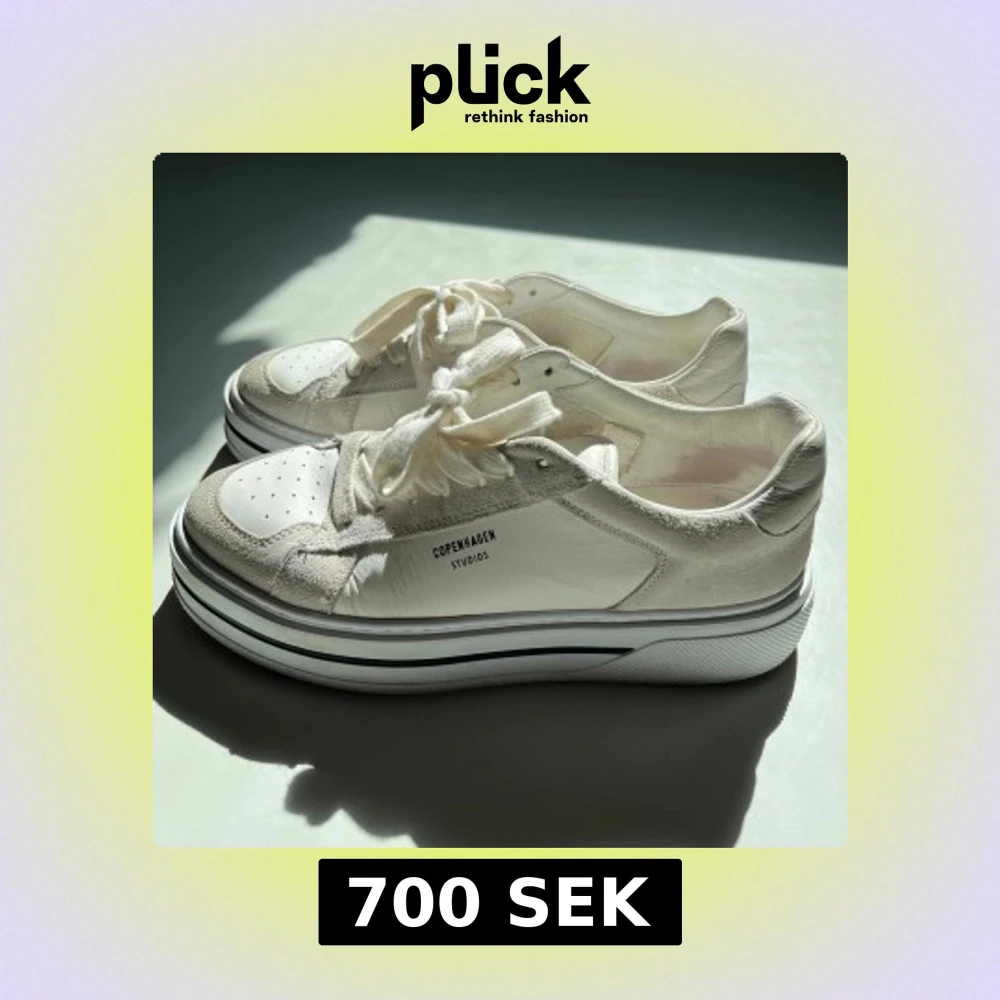Säljer ett par vita sneakers från Copenhagen Studios med chunky sula och snygga detaljer i mocka och skinn. Storlek 39 dem har varit väl omhändertagna, nypris över 2000 kr🌸