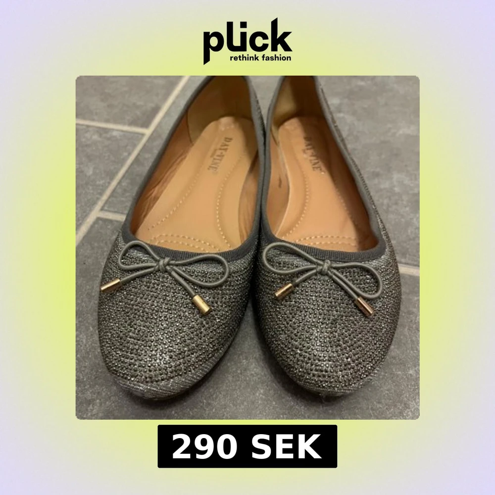 Snygga glittriga ballerinaskor från Design by si i silver med dekorativa rosetter framtill. Perfekta för en utekväll. I nyskick bara använda 1 gång💓 storlek 38 skriv för mått