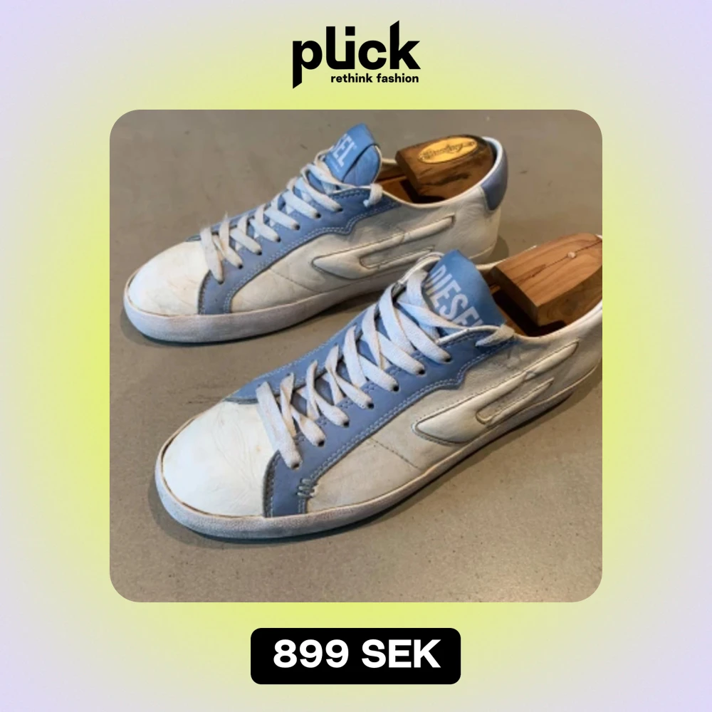 Diesel skor i storlek 43, Nypris 2500 kr. Ganska slitet inne i hälen men inget som stör bekvämligheten eller utseendet. Blåa snören kommer också med. Kan mötas upp i Stockholm.