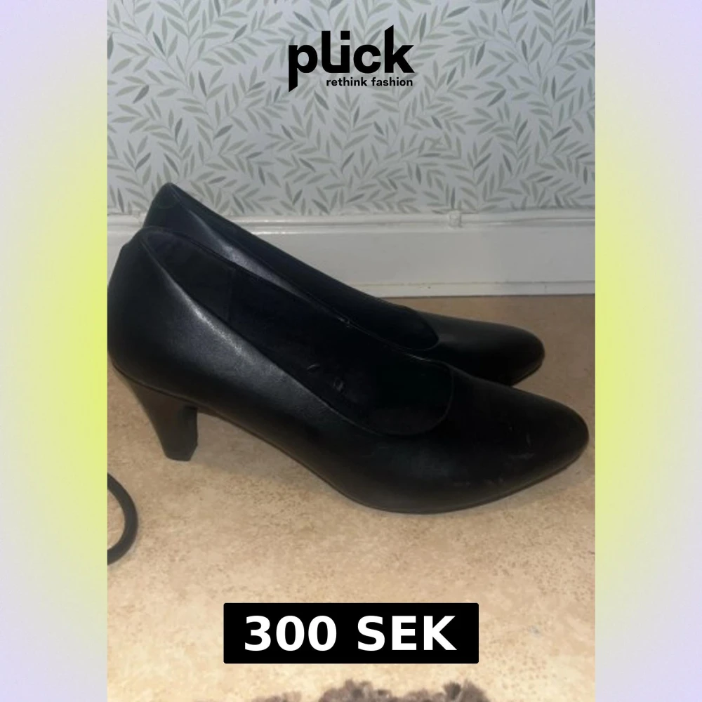 Snygga svarta pumps från din sko med spetsig tå och låg klack. Skorna är tillverkade i skinnimitation och har en klassisk, stilren design som passar till många olika outfits. Perfekta för dig som gillar enkel och elegant stil.