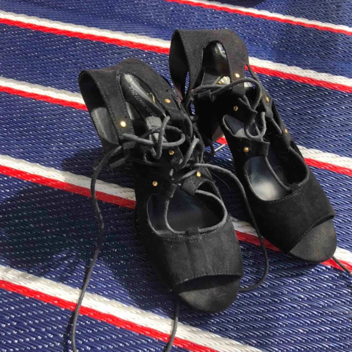 Svarta klackskor med snörning. Bredare klack. Bra skick